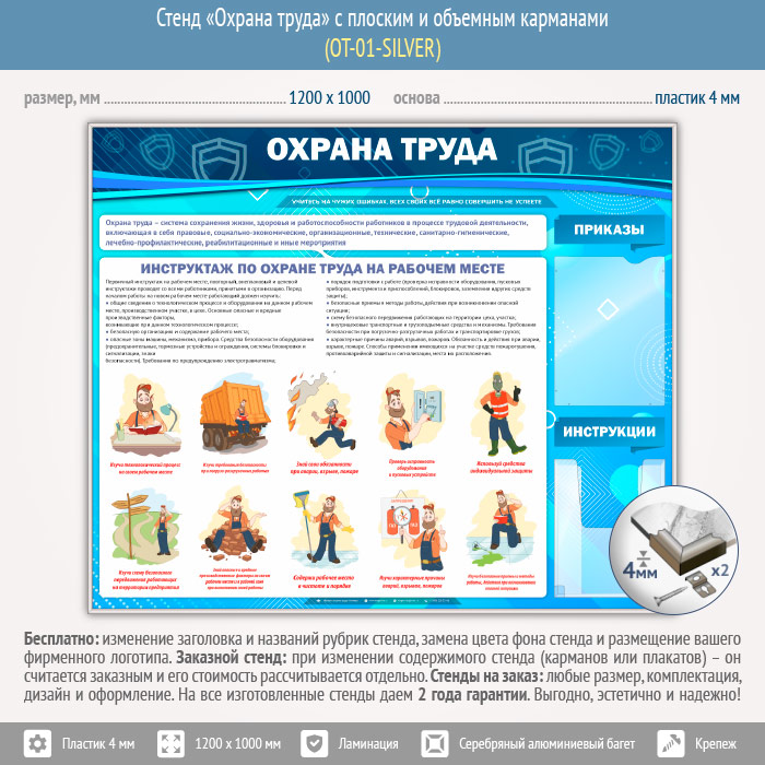 Стенд «Охрана труда» с плоским и объемным карманами (OT-01-SILVER) в Видном купить