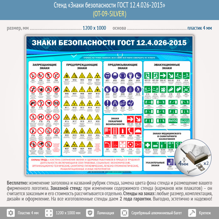 Стенд «Знаки безопасности ГОСТ 12.4.026-2015» (OT-09-SILVER) в Видном купить