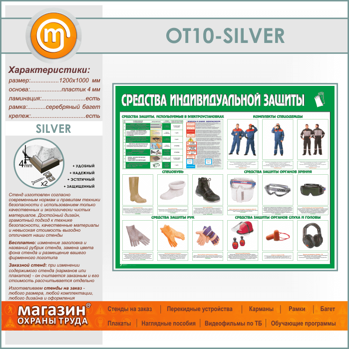 Стенд «Средства индивидуальной защиты» (OT-10-SILVER) в Видном купить