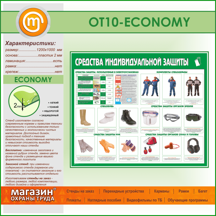 Стенд «Средства индивидуальной защиты» (OT-10-ECONOMY) в Видном купить