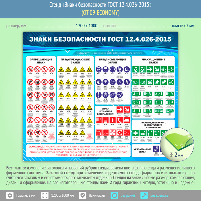 Стенд «Знаки безопасности ГОСТ 12.4.026-2015» (OT-09-ECONOMY) в Видном купить