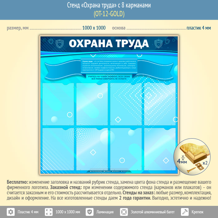 Стенд «Охрана труда» с 8 карманами (OT-12-GOLD) в Видном купить