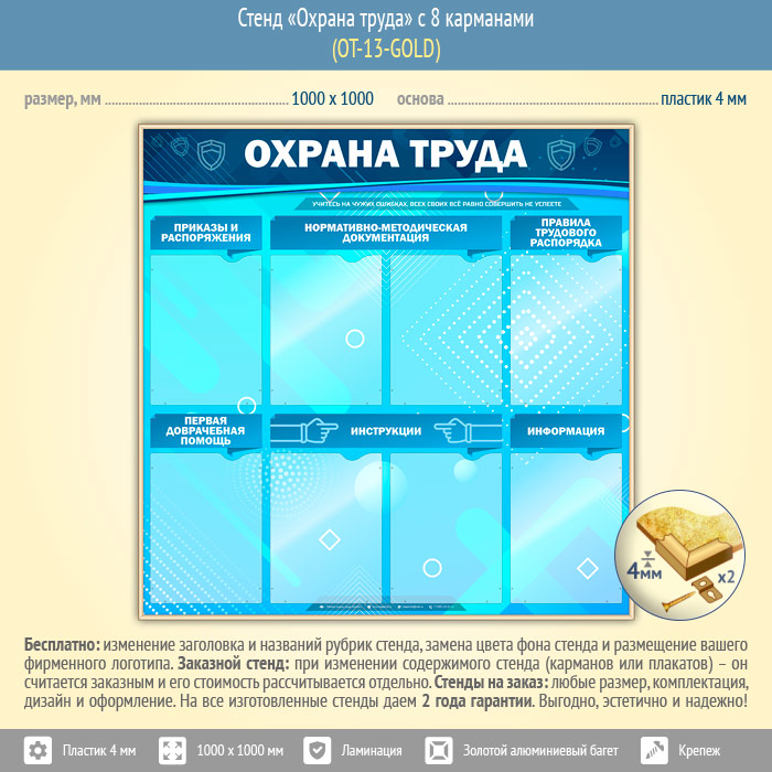 Стенд «Охрана труда» с 8 карманами (OT-13-GOLD) в Видном купить