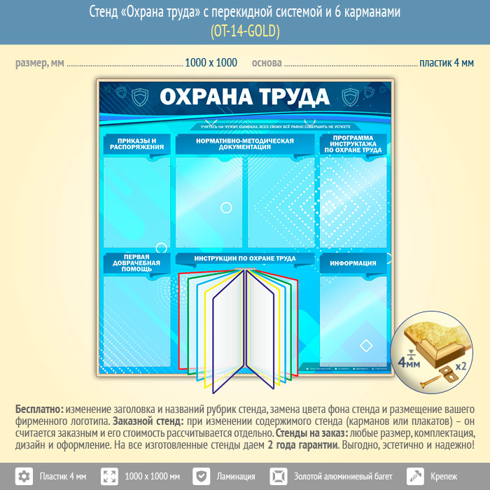 Стенд «Охрана труда» с перекидной системой и 6 карманами (OT-14-GOLD) в Видном купить