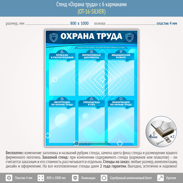 Стенд «Охрана труда» с 6 карманами (OT-16-SILVER) в Видном купить