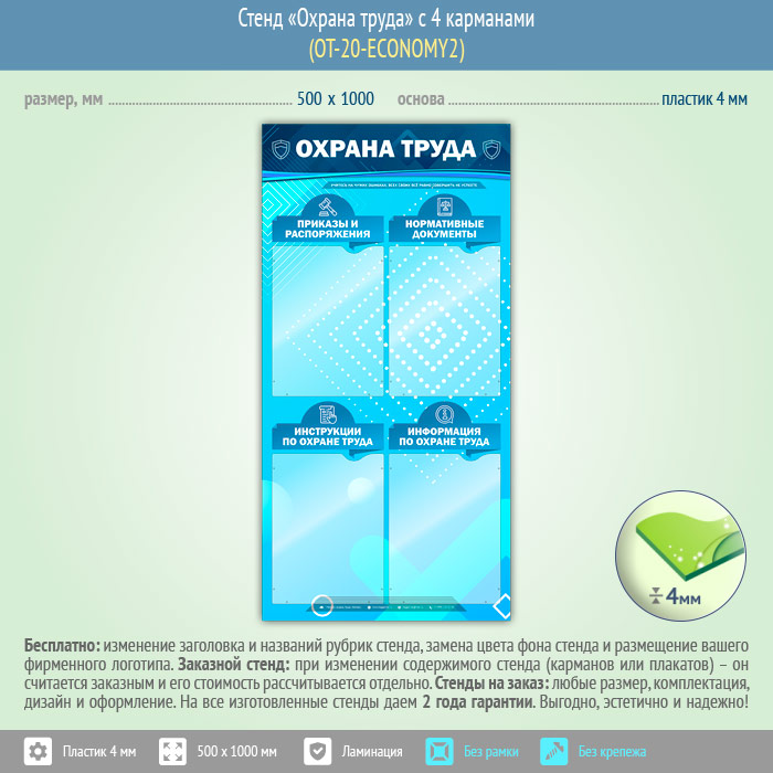 Стенд «Охрана труда» с 4 карманами (OT-20-ECONOMY2) в Видном купить