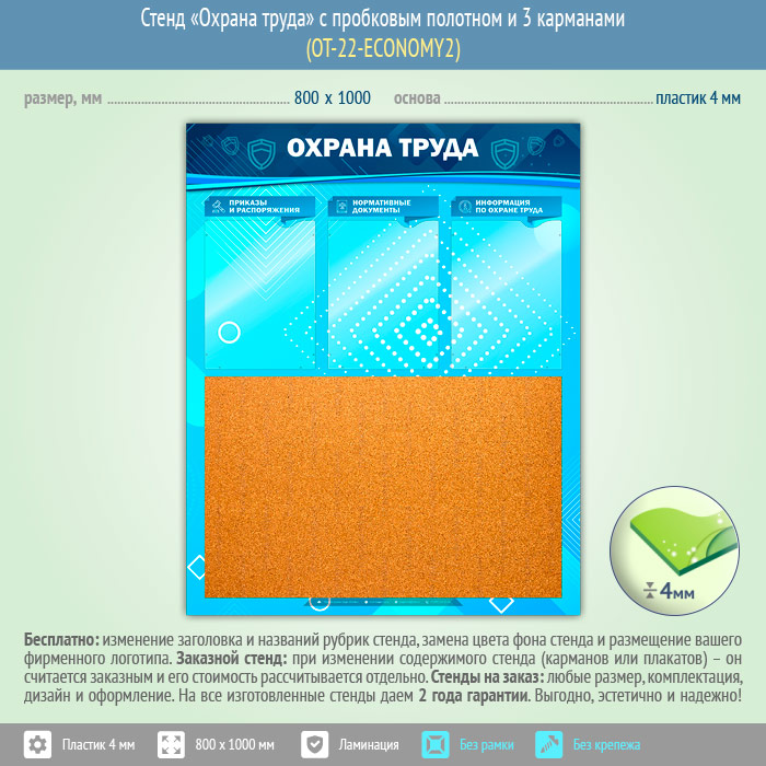 Стенд «Охрана труда» с пробковым полотном и 3 карманами (OT-22-ECONOMY2) в Видном купить