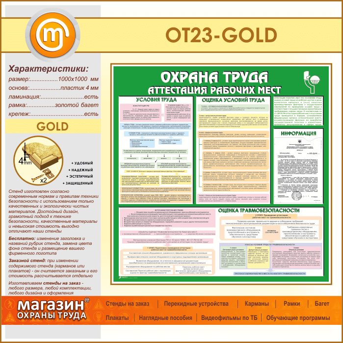 Стенд «Охрана труда. Аттестация рабочих мест» с карманом (OT-23-GOLD) в Видном купить