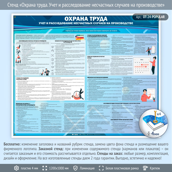 Стенд «Охрана труда. Учет и расследование несчастных случаев на производстве» (OT-24-POPULAR) в Видном купить