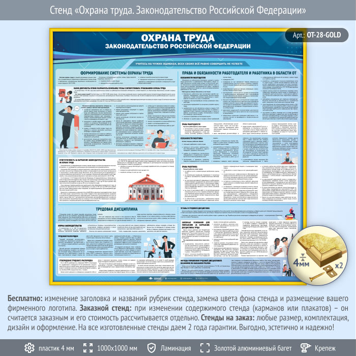 Стенд «Охрана труда. Законодательство Российской Федерации» (OT-28-GOLD) в Видном купить