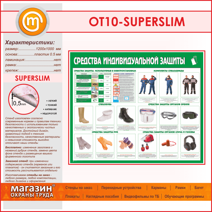 Стенд «Средства индивидуальной защиты» (OT-10-SUPERSLIM) в Видном купить