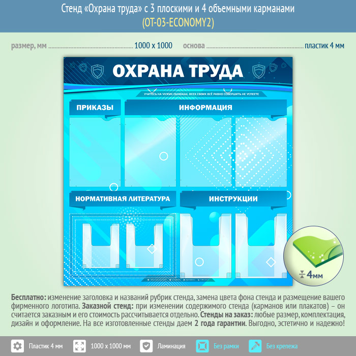 Стенд «Охрана труда» с 4 плоскими и 4 объемными карманами (OT-03-ECONOMY2) в Видном купить