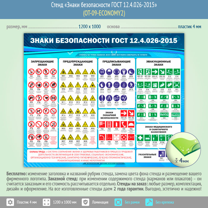 Стенд «Знаки безопасности ГОСТ 12.4.026-2015» (OT-09-ECONOMY2) в Видном купить