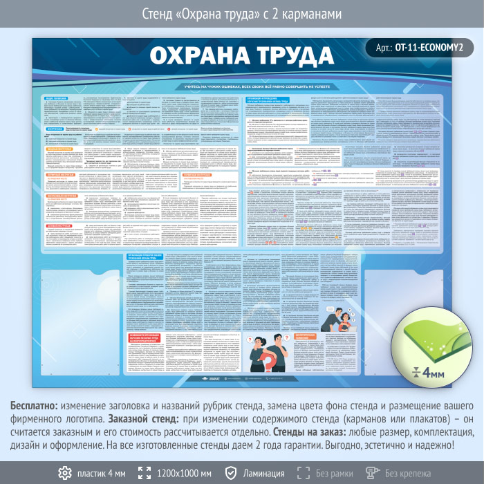 Стенд «Охрана труда» с 2 карманами (OT-11-ECONOMY2) в Видном купить