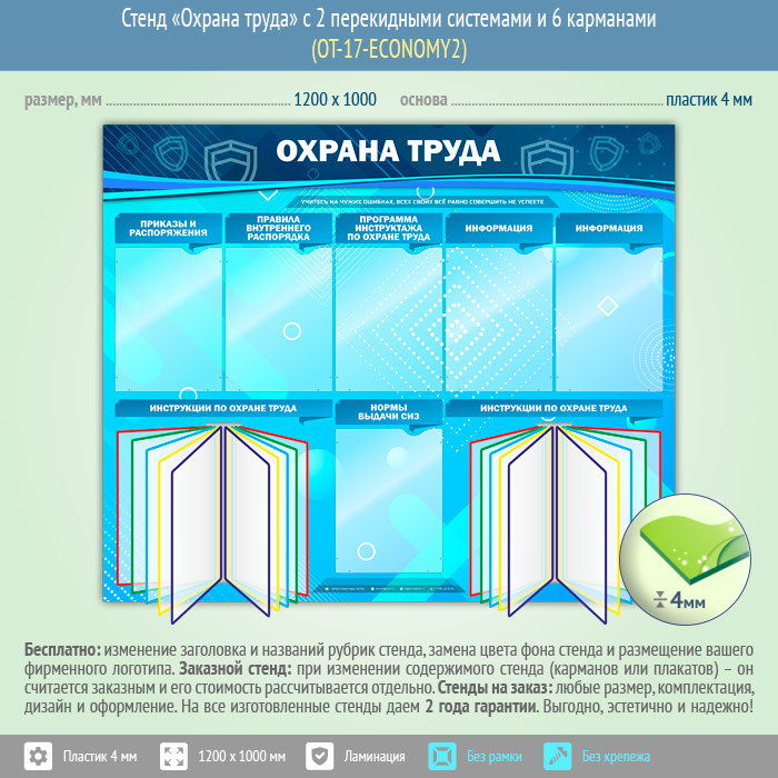 Стенд «Охрана труда» с 2 перекидными системами и 6 карманами (OT-17-ECONOMY2) в Видном купить
