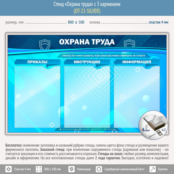Стенд «Охрана труда» с 3 карманами (OT-21-SILVER) в Видном купить