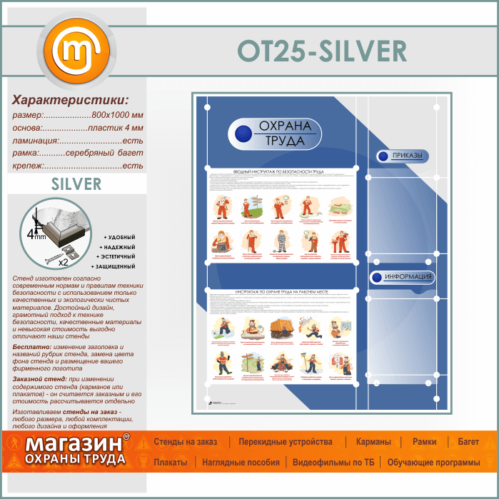 Стенд «Охрана труда» с 2 плоскими карманами (OT-25-SILVER) в Видном купить