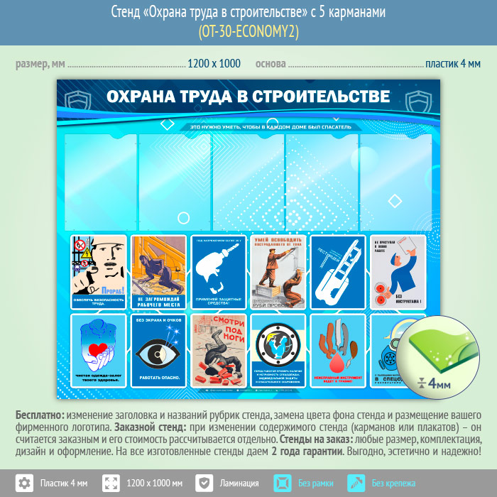 Стенд «Охрана труда в строительстве» с 5 карманами (OT-30-ECONOMY2) в Видном купить