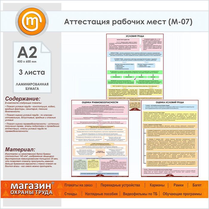 Плакаты «Аттестация рабочих мест» (М-07, ламинированная бумага, А2, 3 листа) в Видном купить