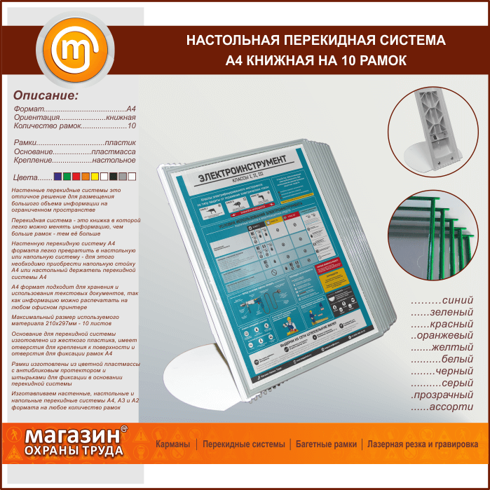 Настольная перекидная система А4 книжная на 10 рамок в Видном купить