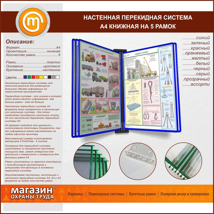 Настенная перекидная система А4 на 5 рамок книжная в Видном купить