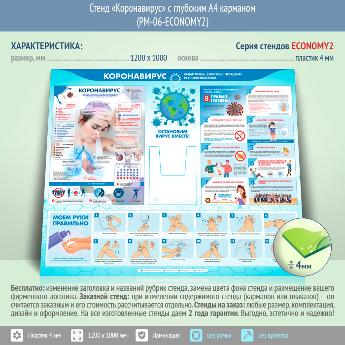 Стенд «Коронавирус» с глубоким А4 карманом (PM-06-ECONOMY2) в Видном купить