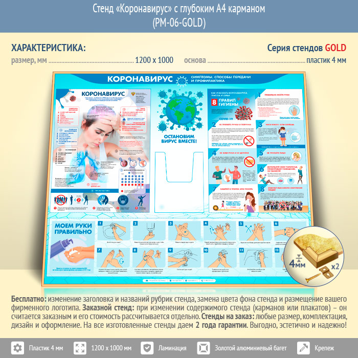 Стенд «Коронавирус» с глубоким А4 карманом (PM-06-GOLD) в Видном купить