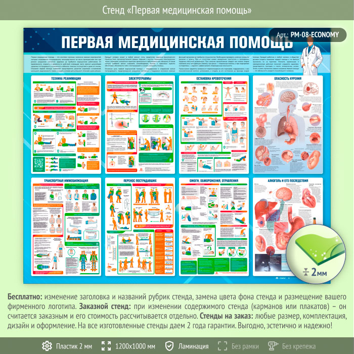 Стенд «Первая медицинская помощь» (PM-08-ECONOMY) в Видном купить