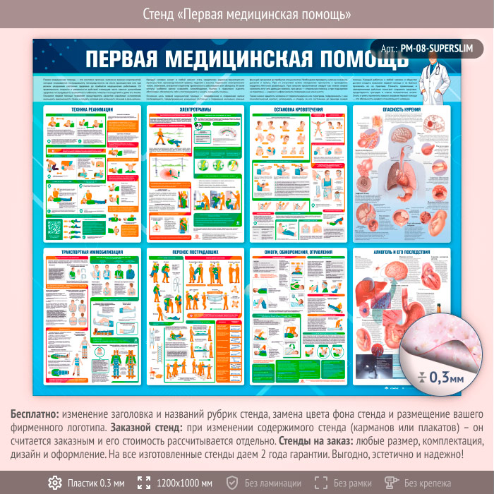 Стенд «Первая медицинская помощь» (PM-08-SUPERSLIM) в Видном купить