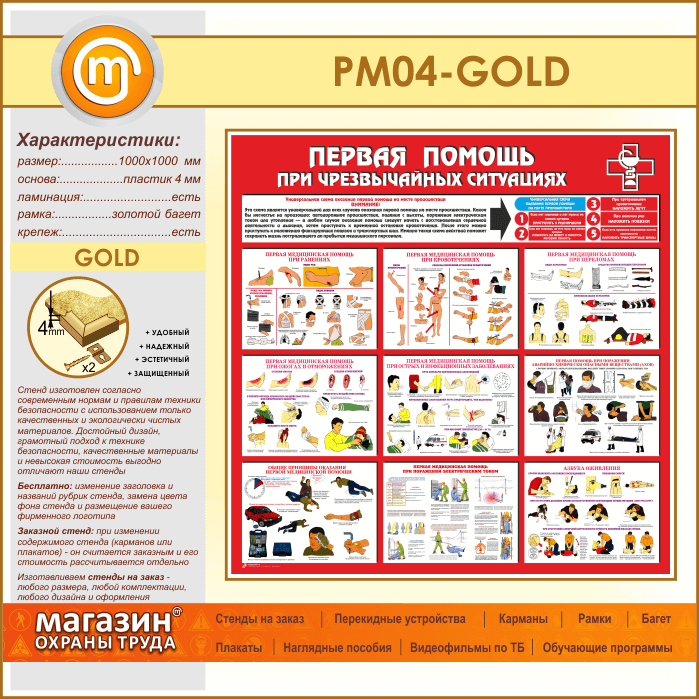 Стенд «Первая помощь при чрезвычайных ситуациях» (PM-04-GOLD) в Видном купить