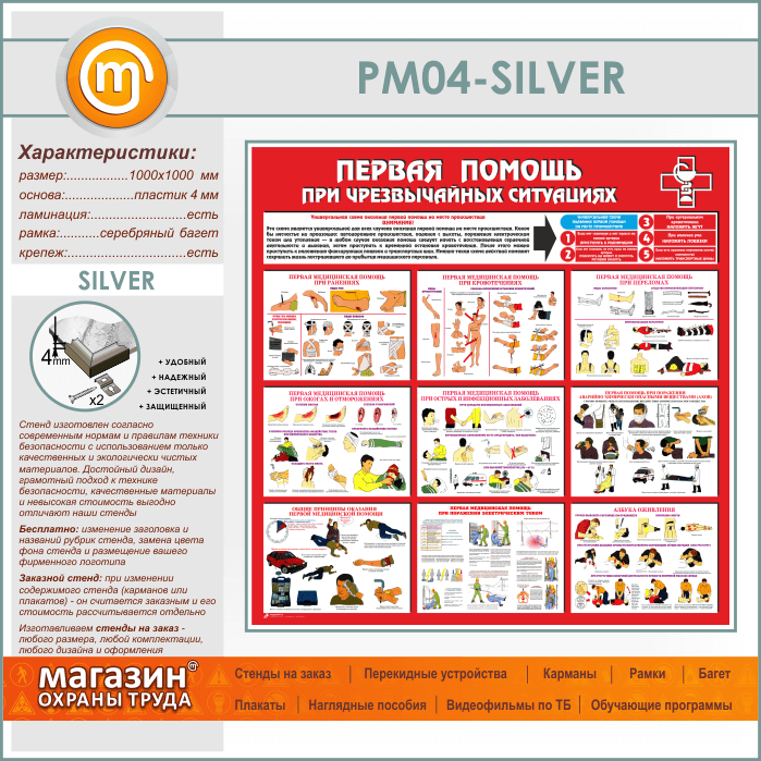 Стенд «Первая помощь при чрезвычайных ситуациях» (PM-04-SILVER) в Видном купить