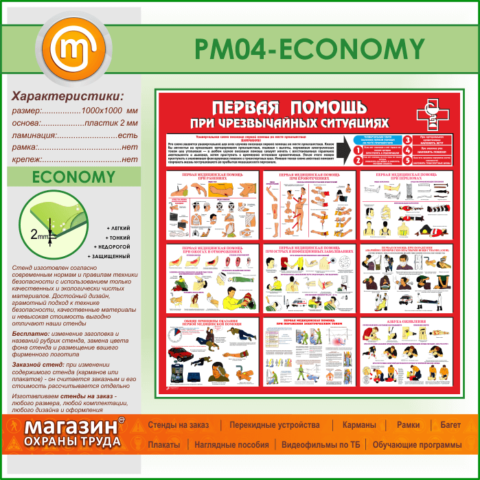 Стенд «Первая помощь при чрезвычайных ситуациях» (PM-04-ECONOMY) в Видном купить