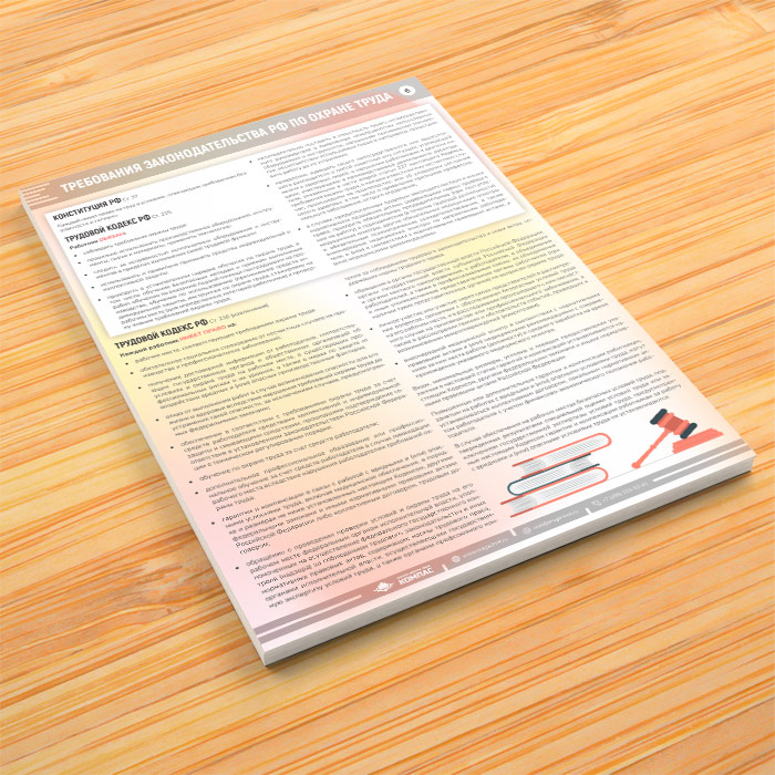 - Плакат «Требования законодательства РФ по охране труда» – конституция и трудовой кодекс – права и обязанности работника