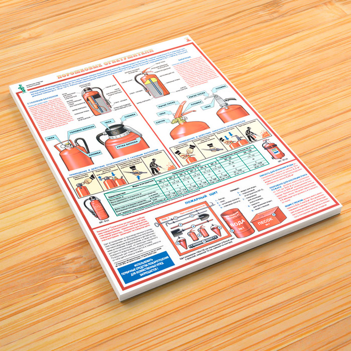 • Плакат «Порошковые огнетушители» – устройство, хранение и использование, пожарный щит