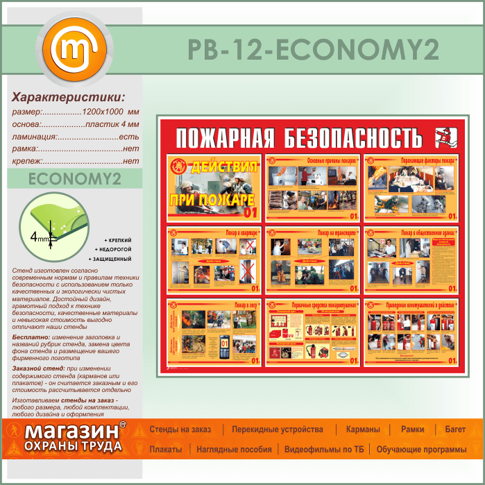 Стенд «Пожарная безопасность. Действия при пожаре» (PB-12-ECONOMY2) в Видном купить