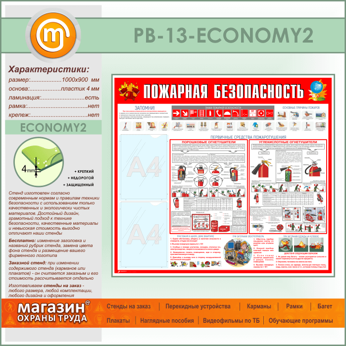 Стенд «Пожарная безопасность» с 2 карманами (PB-13-ECONOMY2) в Видном купить