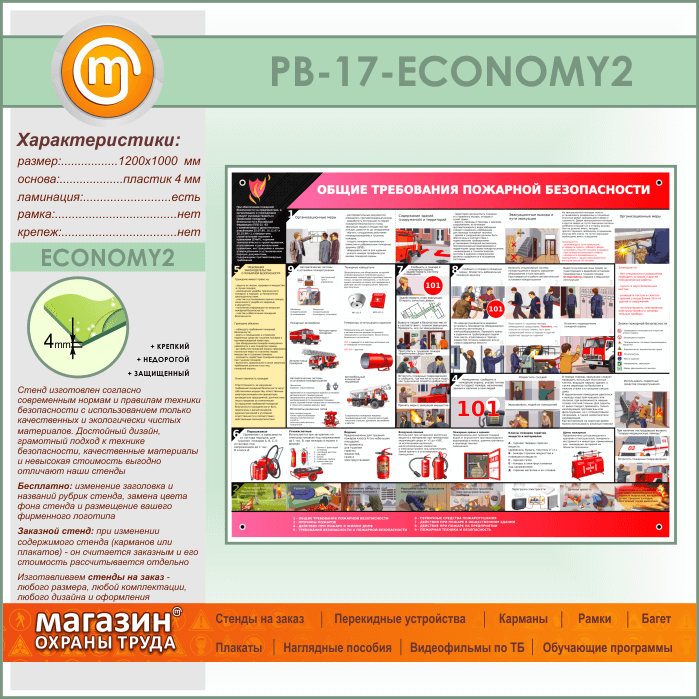 Стенд «Общие требования пожарной безопасности» (PB-17-ECONOMY2) в Видном купить