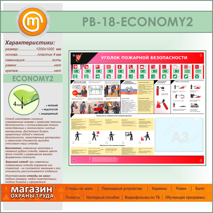 Стенд «Уголок пожарной безопасности» с карманом А3 формата (PB-18-ECONOMY2) в Видном купить