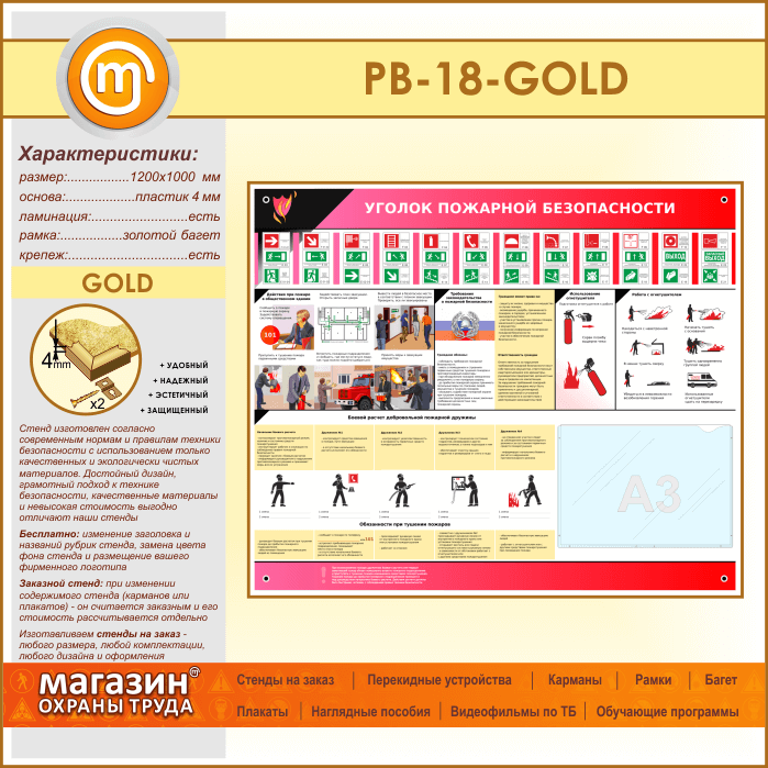 Стенд «Уголок пожарной безопасности» с карманом А3 формата (PB-18-GOLD) в Видном купить