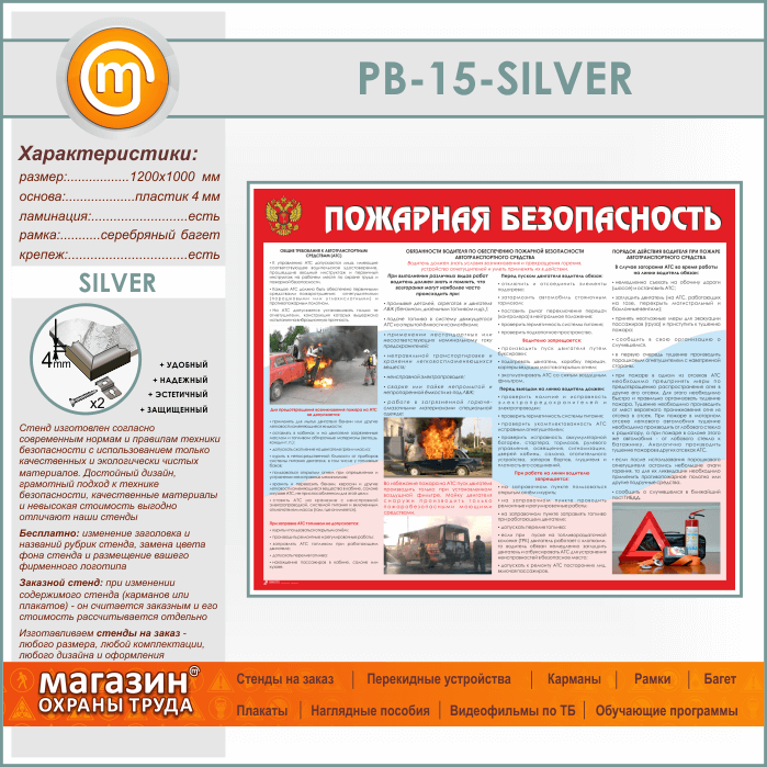 Стенд «Пожарная безопасность на автотранспорте» (PB-15-SILVER) в Видном купить