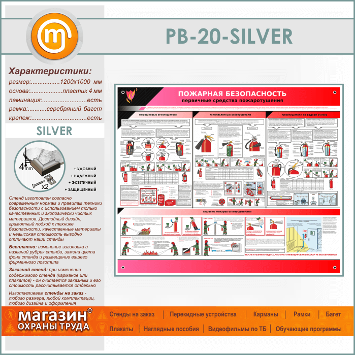 Стенд «Пожарная безопасность. Первичные средства пожаротушения» (PB-20-SILVER) в Видном купить