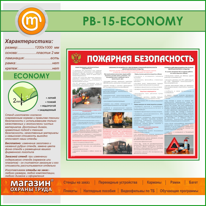 Стенд «Пожарная безопасность на автотранспорте» (PB-15-ECONOMY) в Видном купить