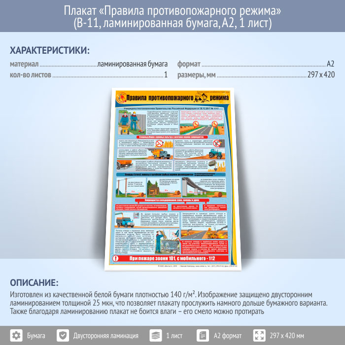 Плакат «Правила противопожарного режима» (В-11, ламинированная бумага, А2, 1 лист) в Видном купить