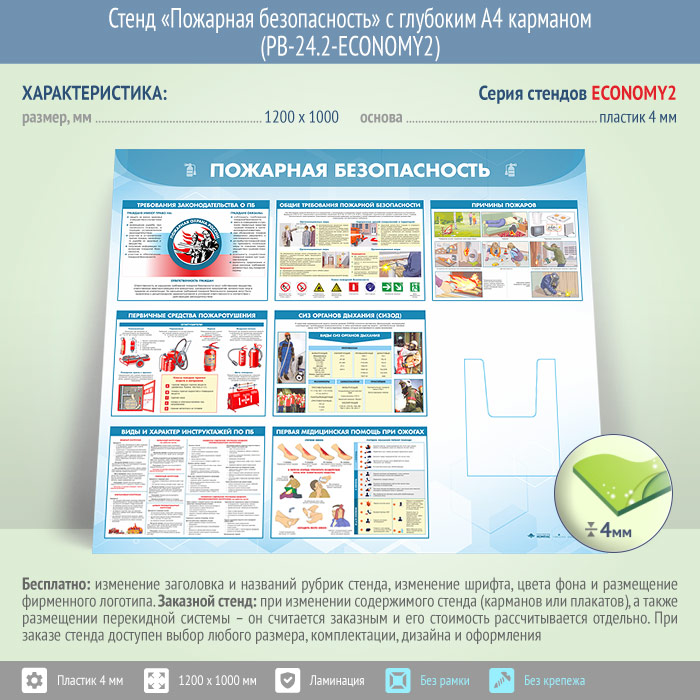 Стенд «Пожарная безопасность» с глубоким А4 карманом (PB-24.2-ECONOMY2) в Видном купить