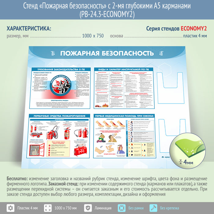 Стенд «Пожарная безопасность» с 2-мя глубокими А5 карманами (PB-24.3-ECONOMY2) в Видном купить