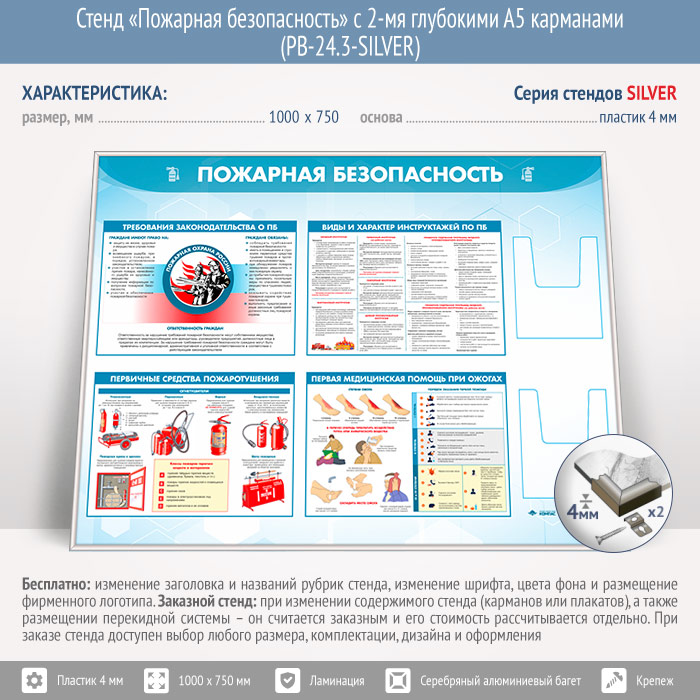 Стенд «Пожарная безопасность» с 2-мя глубокими А5 карманами (PB-24.3-SILVER) в Видном купить