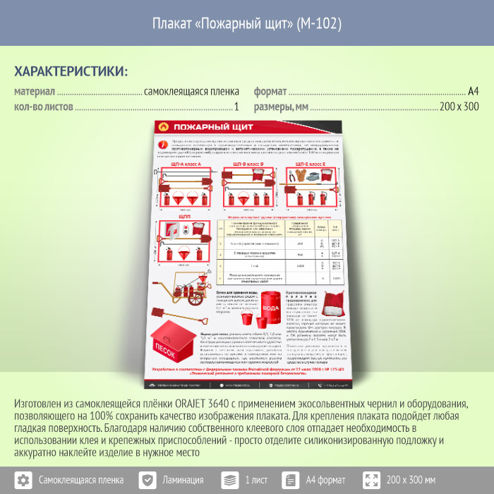 Плакат «Пожарный щит» (М-102, самоклеящаяся пленка, А4, 1 лист) в Видном купить