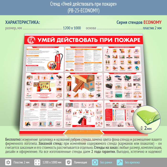 Стенд «Умей действовать при пожаре» (PB-25-ECONOMY) в Видном купить