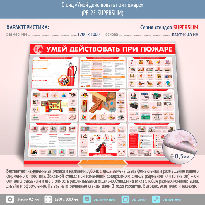 Стенд «Умей действовать при пожаре» (PB-25-SUPERSLIM) в Видном купить