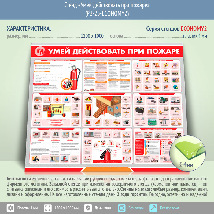 Стенд «Умей действовать при пожаре» (PB-25-ECONOMY2) в Видном купить